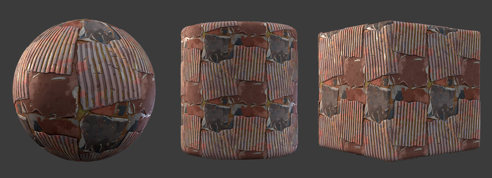 Material previews rendered in Marmoset Toolbag, visual results may vary depending on render engine, tiling amount, lighting conditions, etc. sbsar file performance may differ based on your pc specs.