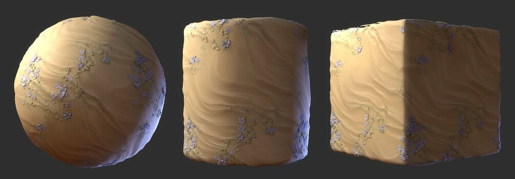 Material previews rendered in Marmoset Toolbag, visual results may vary depending on render engine, tiling amount, lighting conditions, etc. sbsar file performance may differ based on your pc specs.