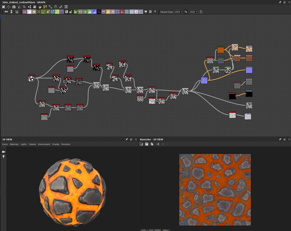 Stylized Rocks with Lava - Substance Designer