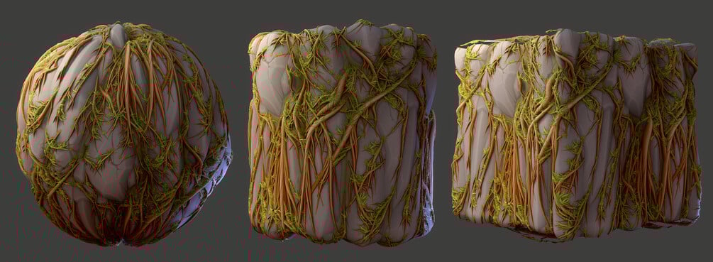 Qty: 1Stylized Tree Roots on Rock - Substance 3D Designer