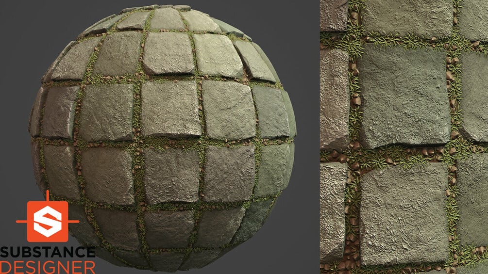 Material previews rendered in Marmoset Toolbag, visual results may vary depending on render engine, tiling amount, lighting conditions, etc. sbsar file performance may differ based on your pc specs.