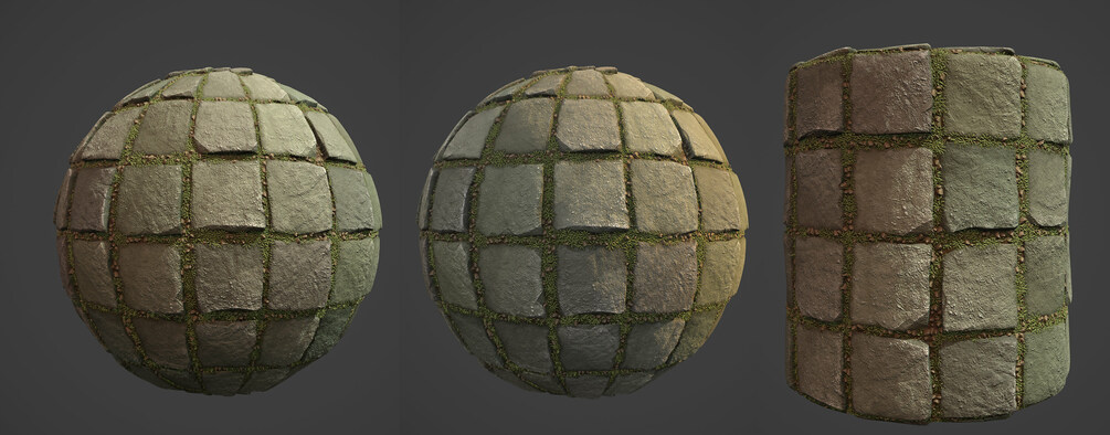 Material previews rendered in Marmoset Toolbag, visual results may vary depending on render engine, tiling amount, lighting conditions, etc. sbsar file performance may differ based on your pc specs.