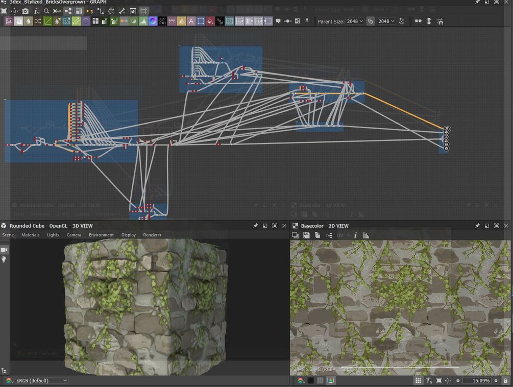 Stylized Overgrown Bricks - Substance 3D Designer