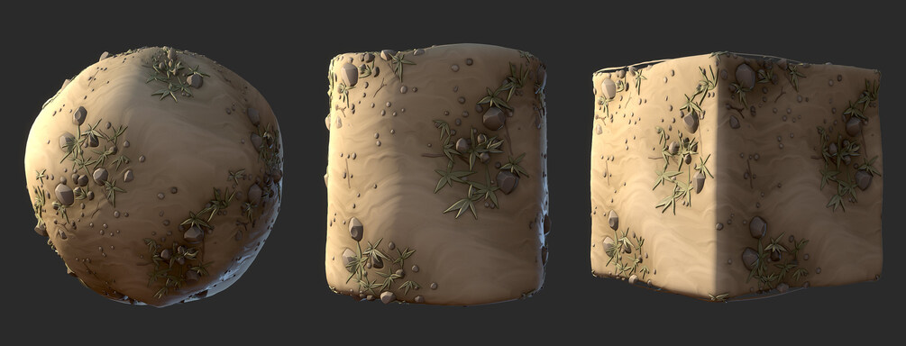 Material previews rendered in Marmoset Toolbag, visual results may vary depending on render engine, tiling amount, lighting conditions, etc. sbsar file performance may differ based on your pc specs.