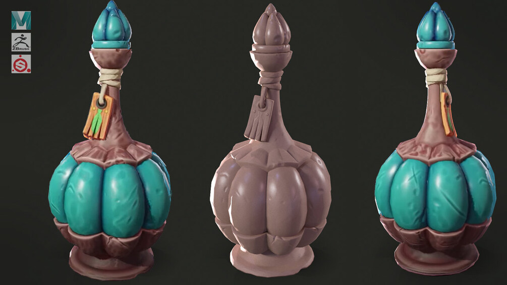 Stylized Potion Bottle - Maya, Zbrush, Substance Painter Videos