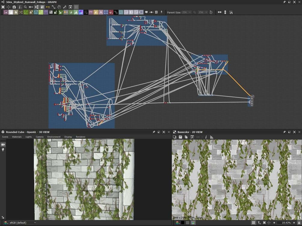 Stylized Ruin Wall with Foliage - Substance 3D Designer