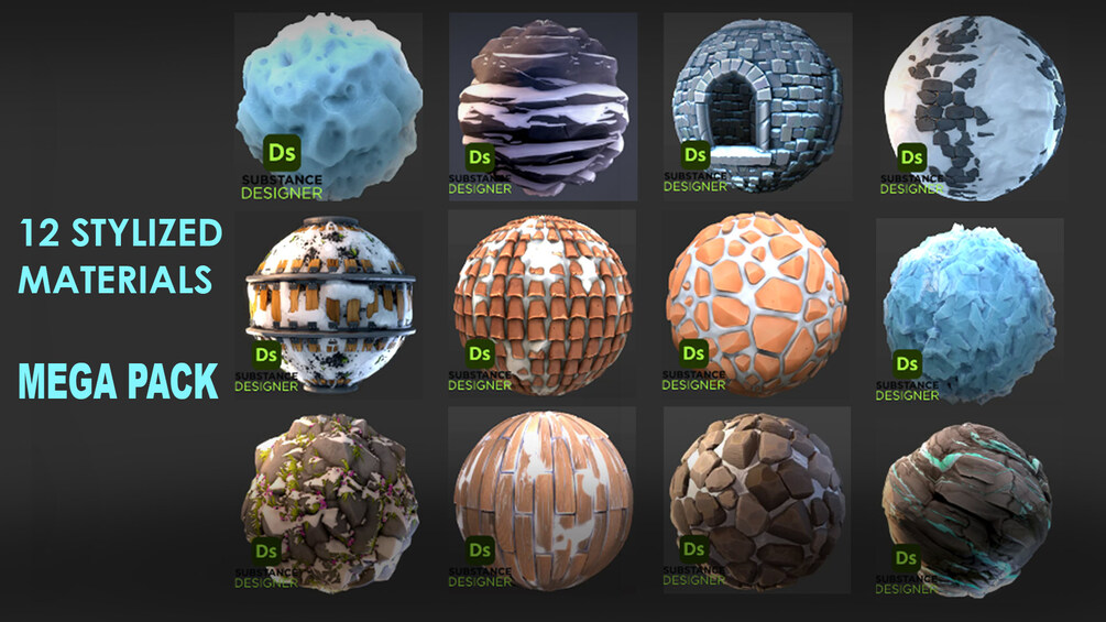 _12 Substance 3D Designer Files( must have version 13.0.2 build 6942) or higher to be able to open the file)